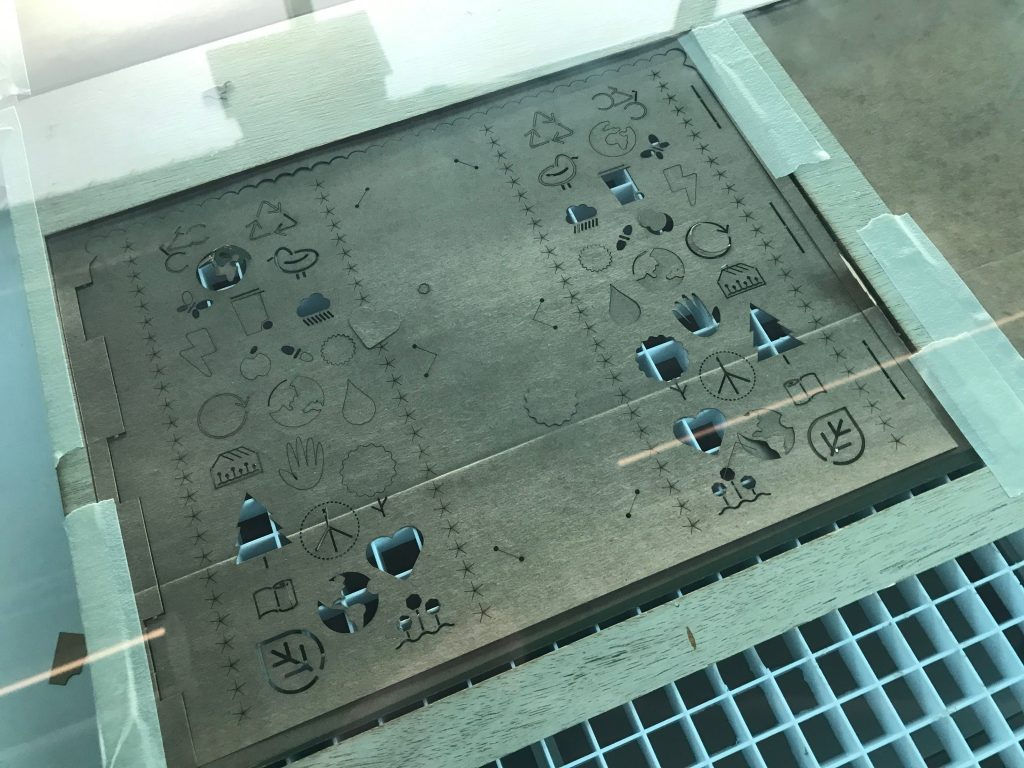 Materials: laser cut hanging file folders, printed file folders