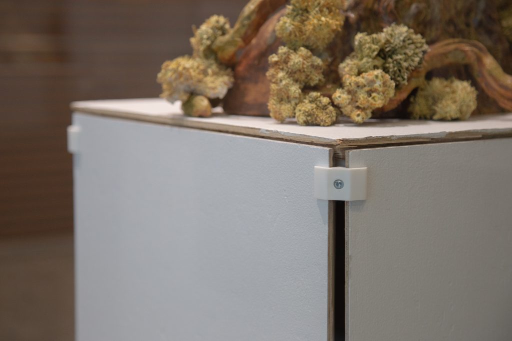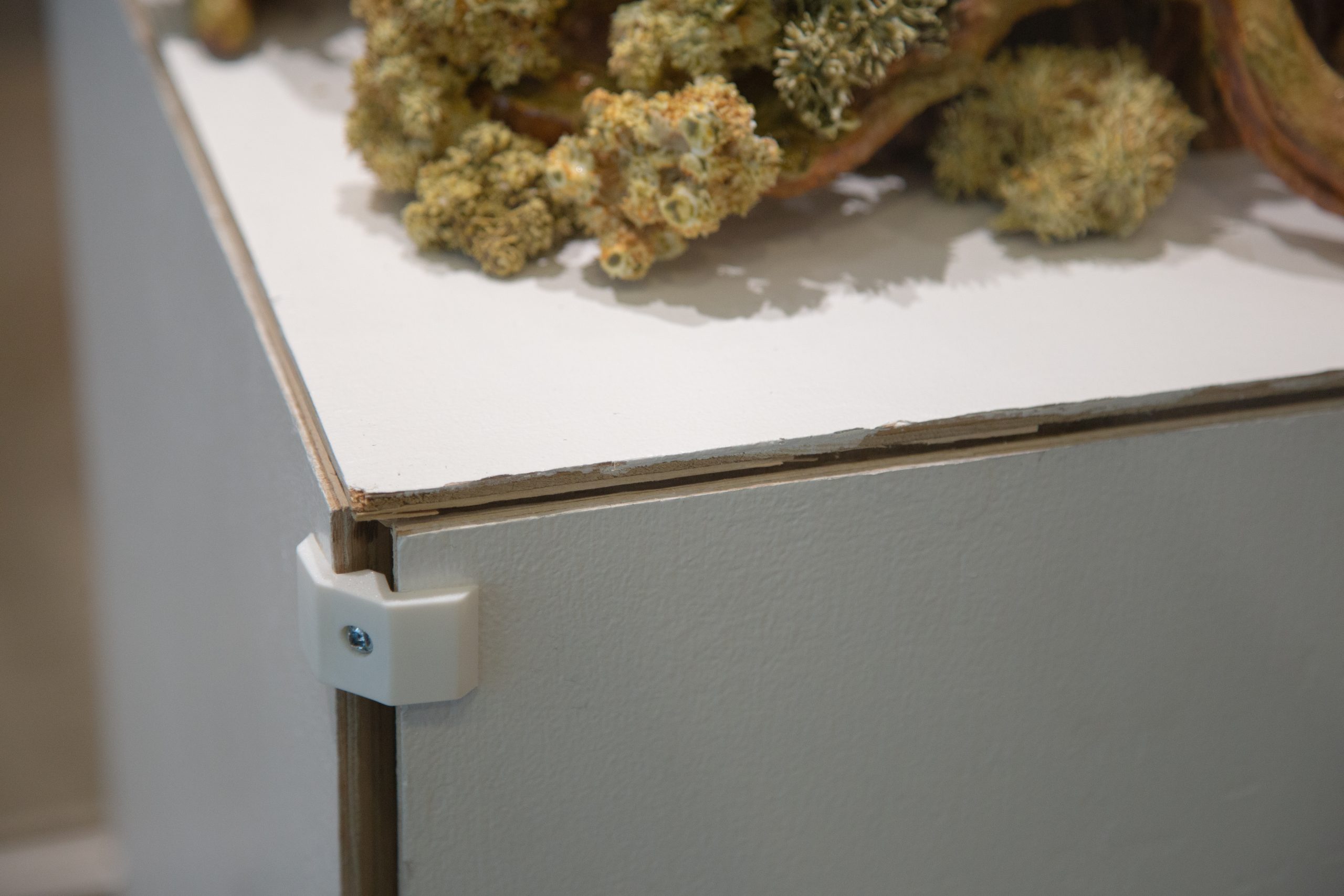 Old plinth (wood, plaster, paint), 3D printed PLA connectors, metal fasteners
